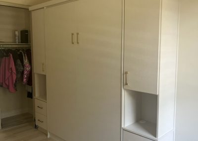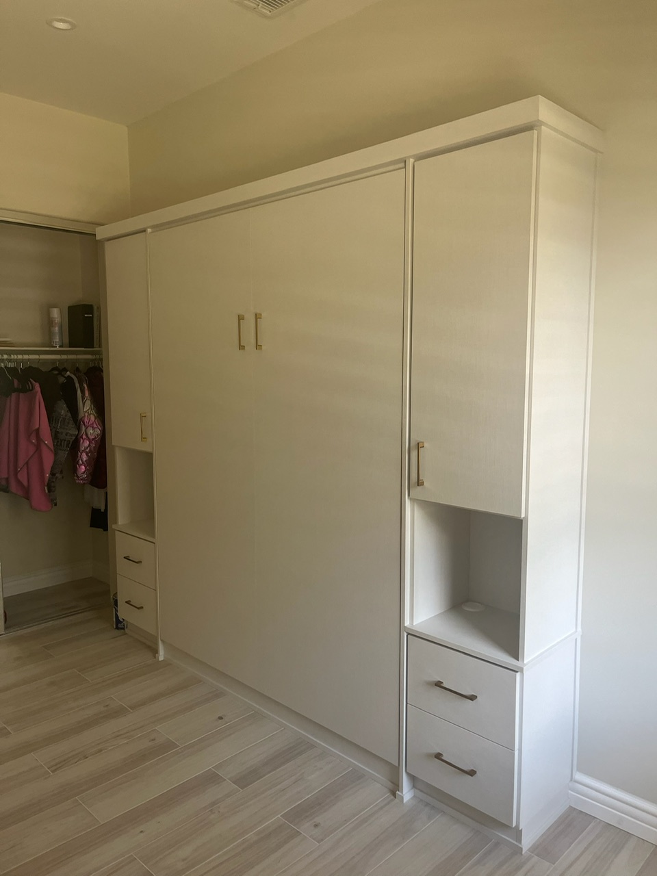 When looking for custom wall beds in San Diego or Orange County, you’ll find that Classy Closets has a wide variety of options, as well as side units to complement your new wall bed such as desks, closets and custom entertainment centers. Classy Closets offers a number of murphy bed options for additional storage or home office solutions needed to maximize the efficiency of any room. There are a variety of standard or custom color laminates or wood veneers to choose from along with many other quality accessories to help customize your custom murphy bed or living space in San Diego or Orange County.